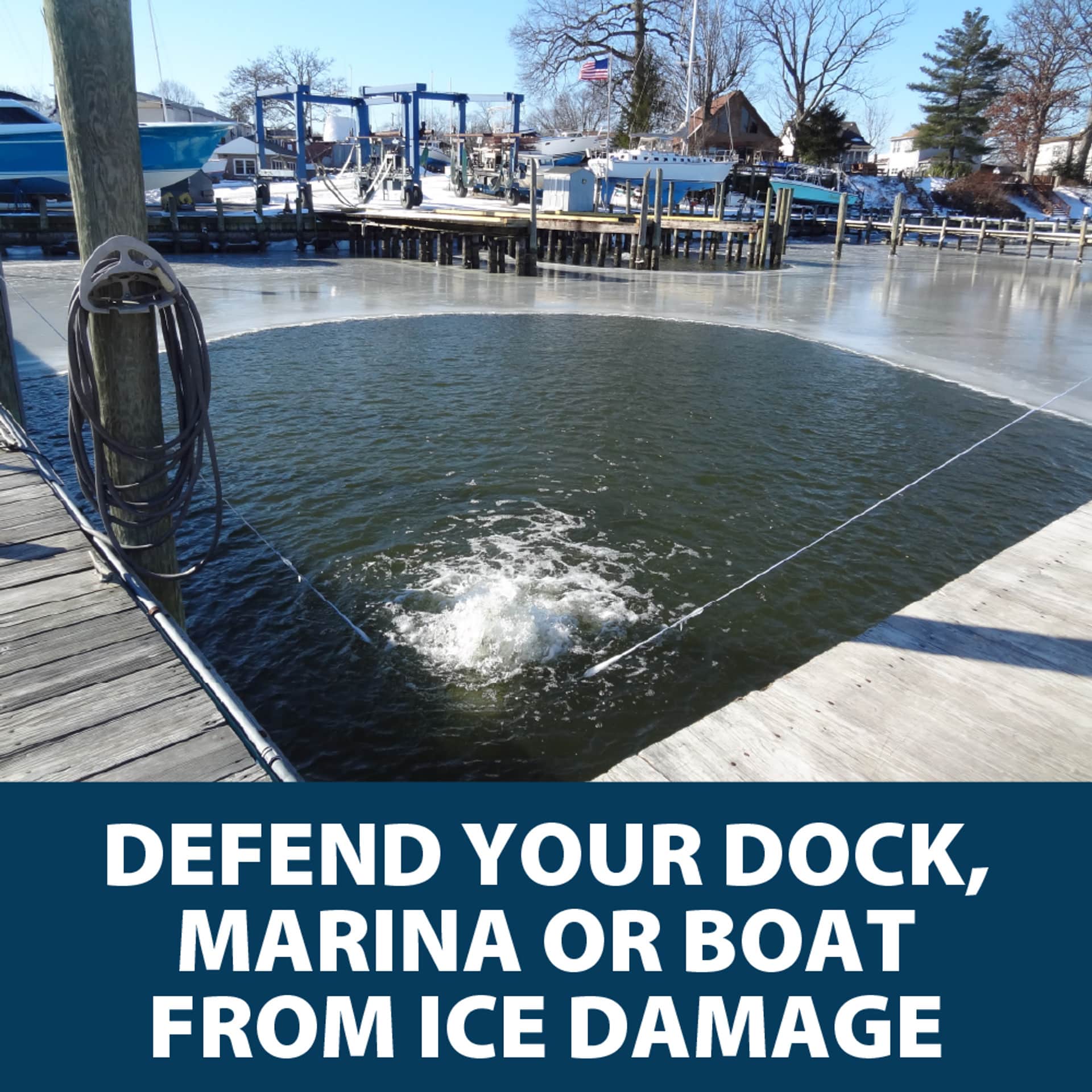 - Prevents Structural Damage: Stops ice from expanding and crushing docks, piers, and boat houses.